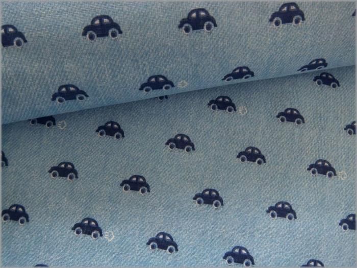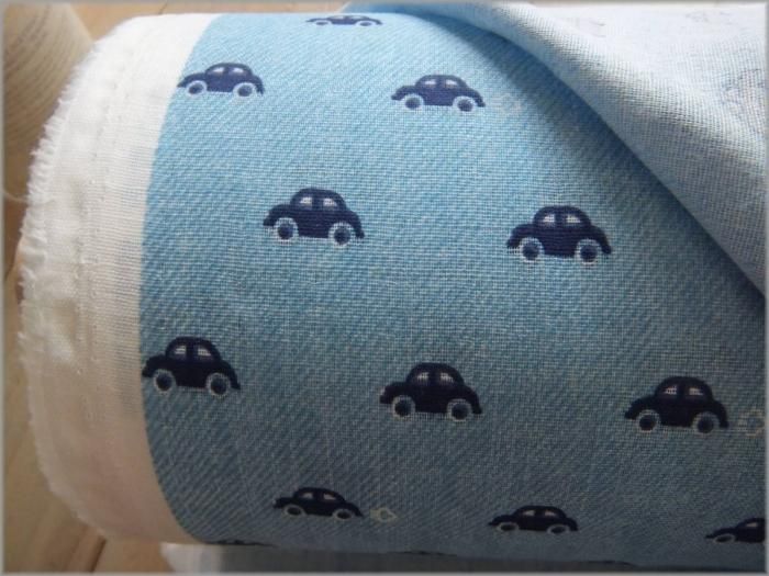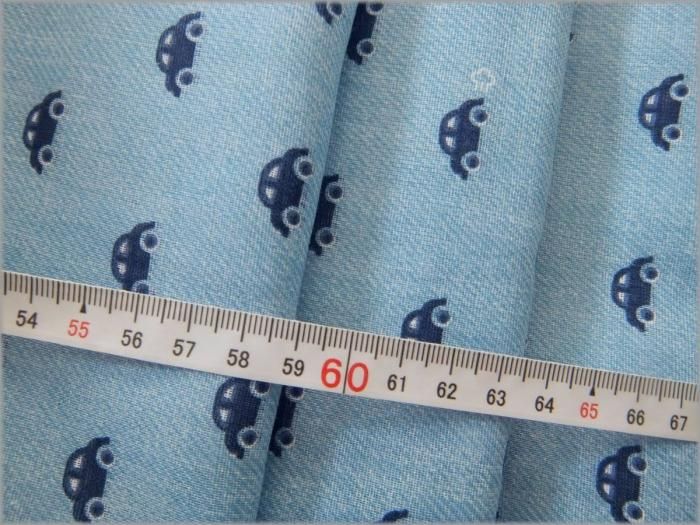 【ダブルガーゼ 生地】車柄*デニム転写風*コットン*blue*9A