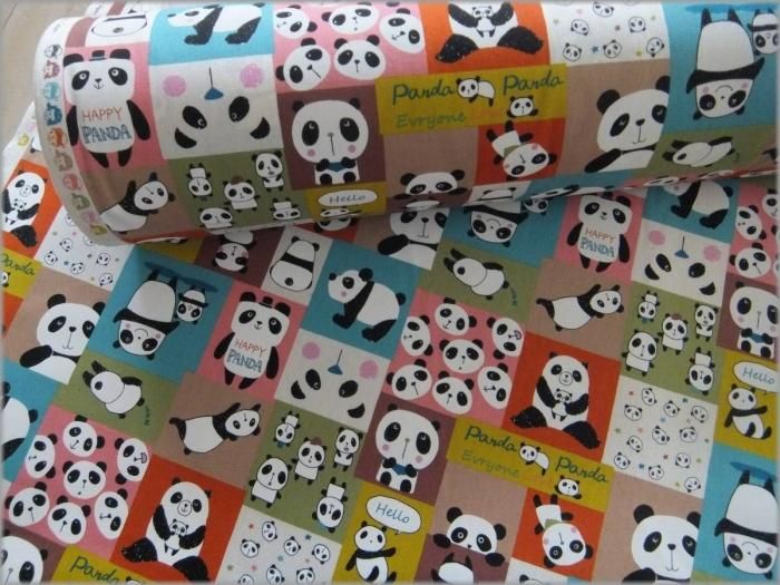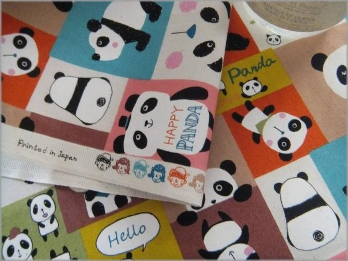 【CBポプリン 生地】パンダブロック*コットン*smoky*4E