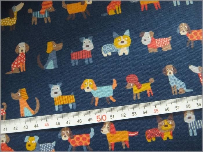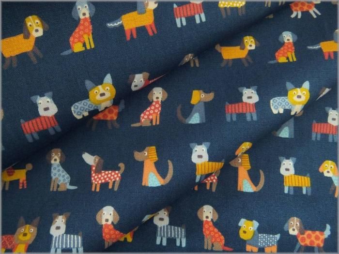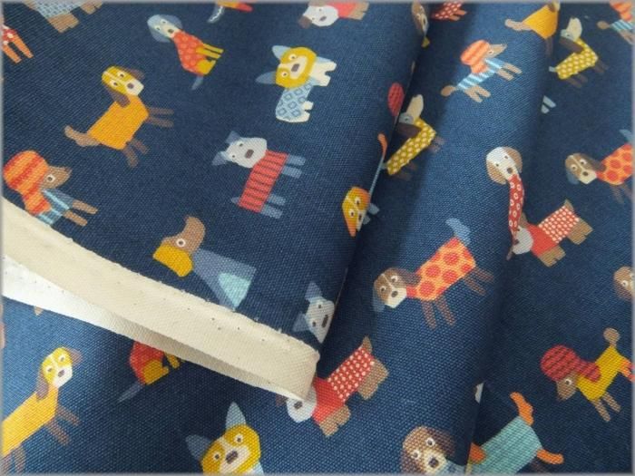 【オックス 生地】いぬのボーダープリント犬*コットン*navy*1D