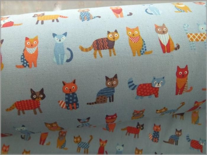 【オックス 生地】ねこのボーダープリント猫*コットン*blue*2C
