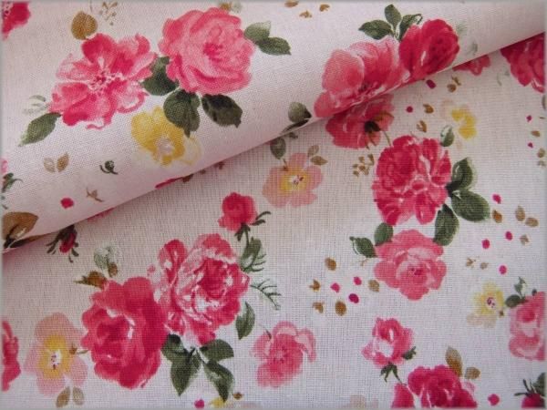 【綿麻キャンバス 生地】アンティークローズ薔薇*pink*1D