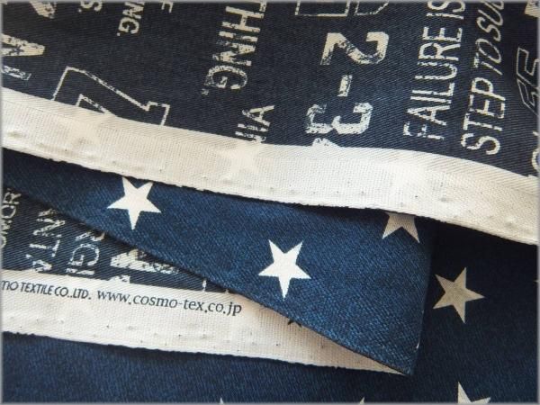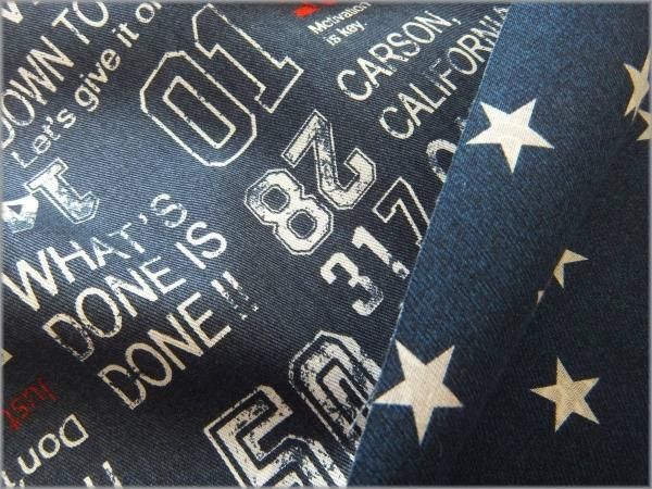 【ツイル 生地】ブルックリン*英字&星*リバーシブル*コットン*2C