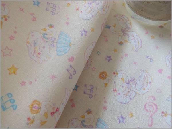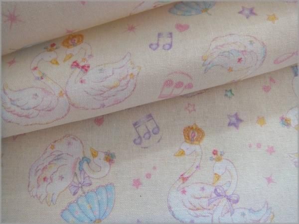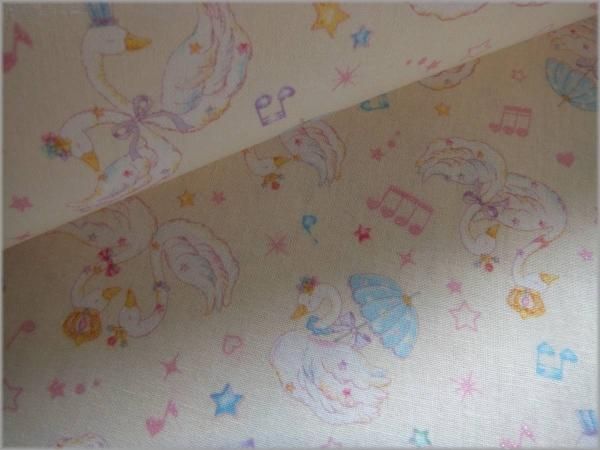【シーチング 生地】スワン白鳥*コットン*音符スター*vanilla*1A