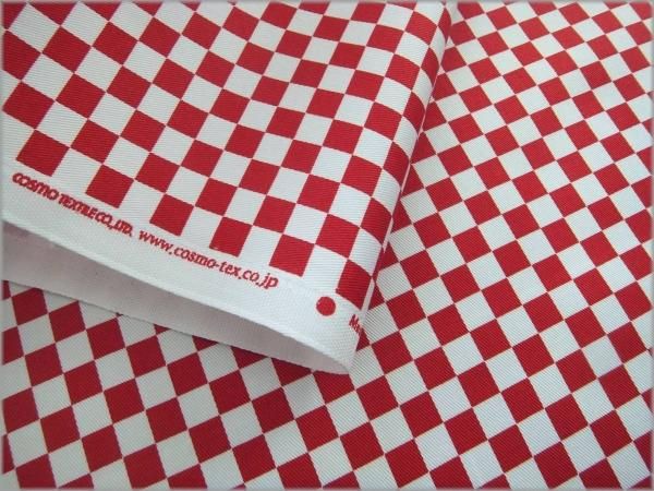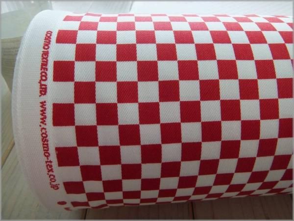 【ツイル 生地】市松模様*10mm角*red*レッド×ホワイト*55D