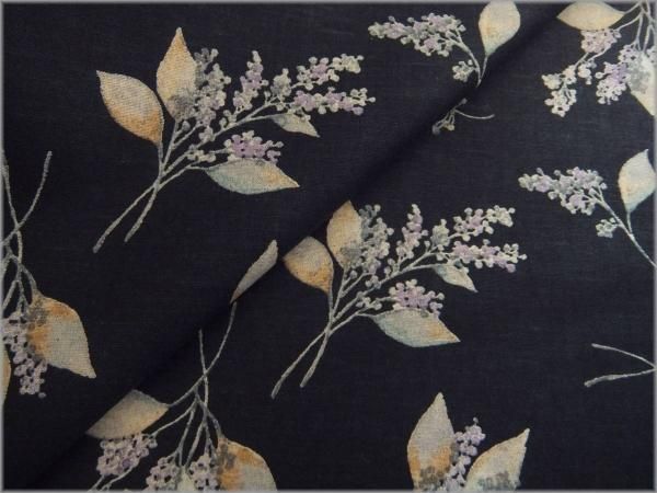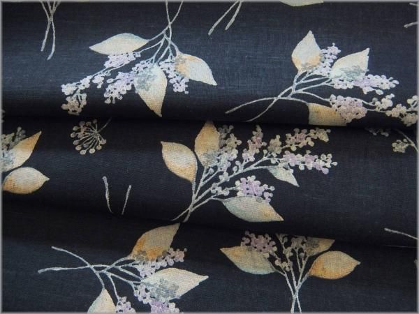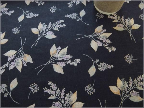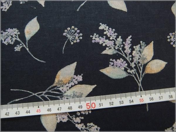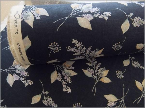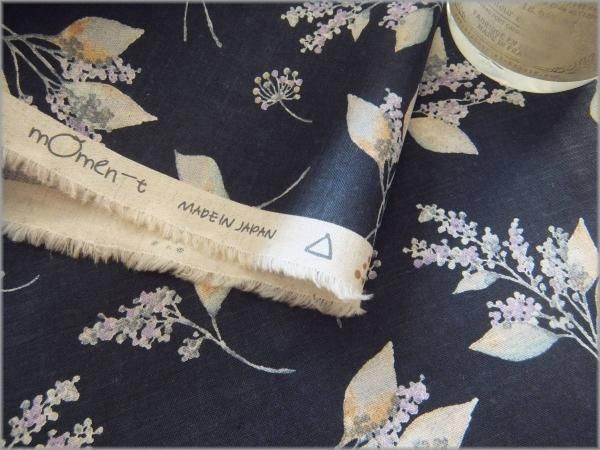 【綿麻シーチング 生地】草花柄*リーフ*momen-t*navy*B4