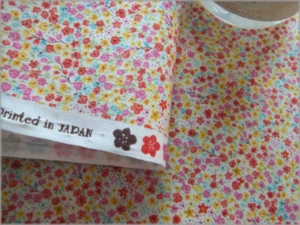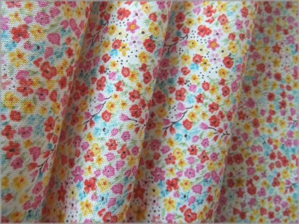 【スケア 生地】ボタニカル*小花プリント*コットン*草花*red*1A