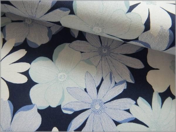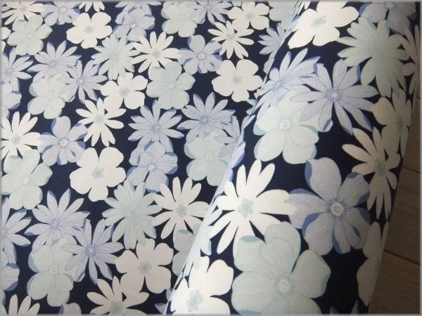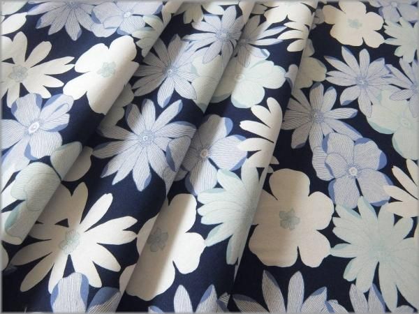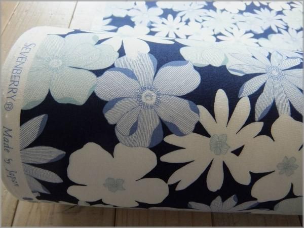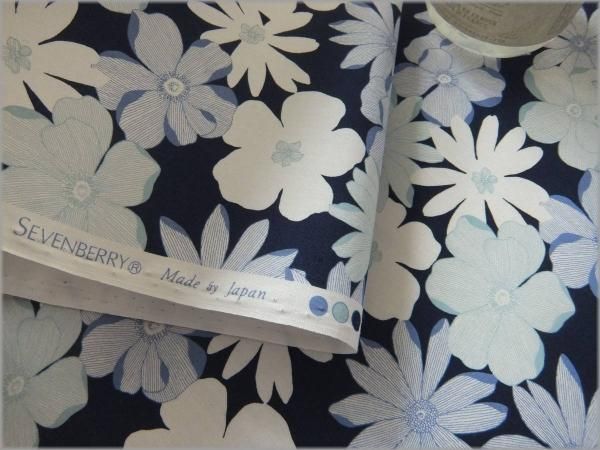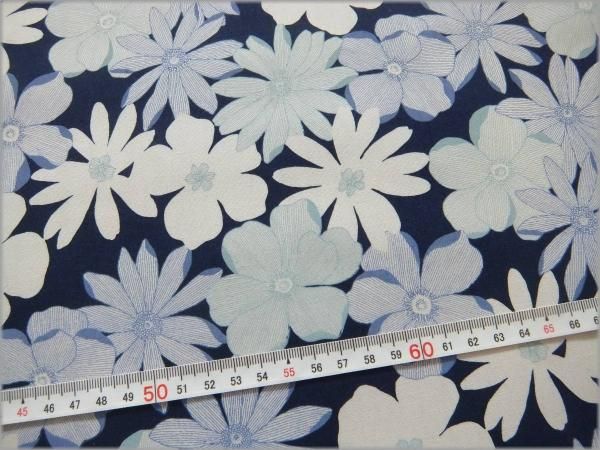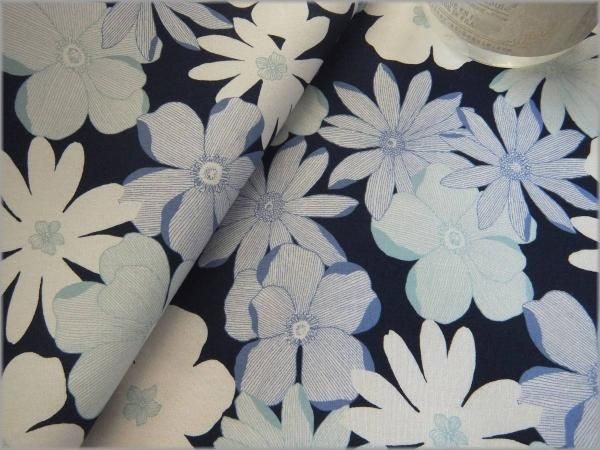【ブロード 生地】線描きフラワー*花柄*コットン*navy*B3