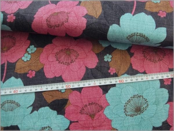 【バニラン 生地】レトロモダン*フラワー*brown*1D