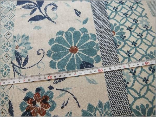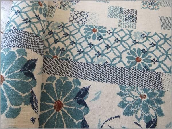 【ドビー 生地】和柄ストライプ*コットン*花柄*beige×blue*3E