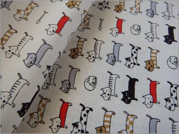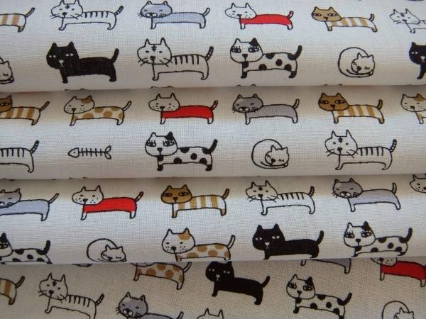 【綿麻キャンバス 生地】整列ネコ*コットンリネン*off white*6E