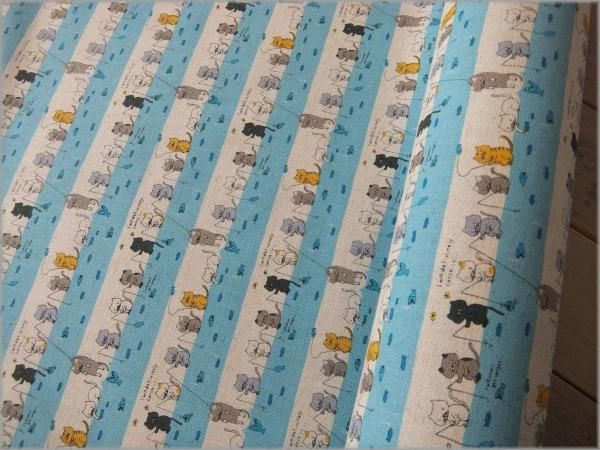 【綿麻キャンバス 生地】ネコ猫*フィッシング*コットンリネン*76B