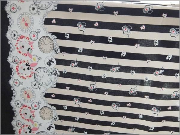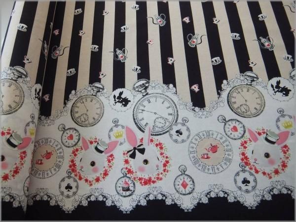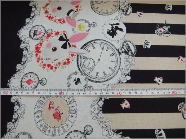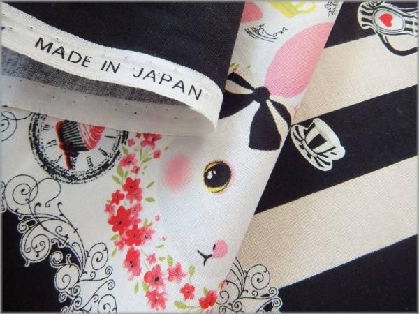 【シーチング 生地】ウサギのスカラッププリント*black*53D