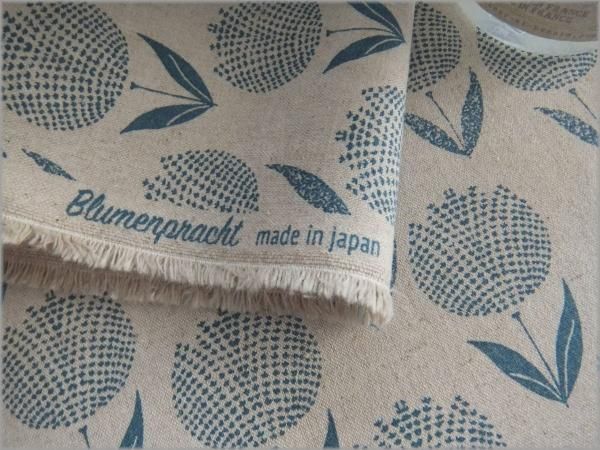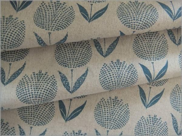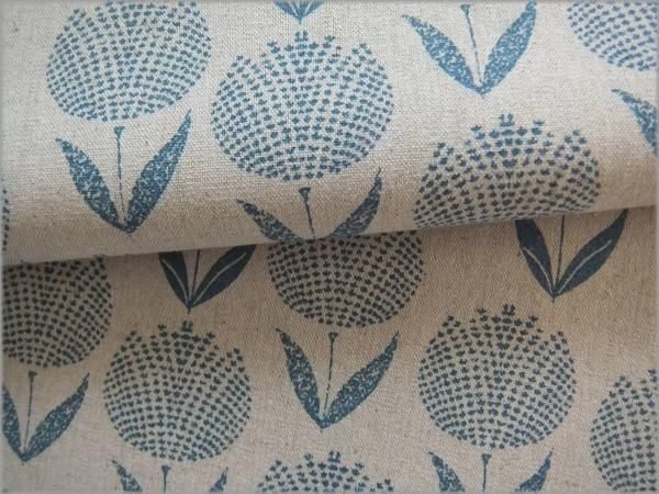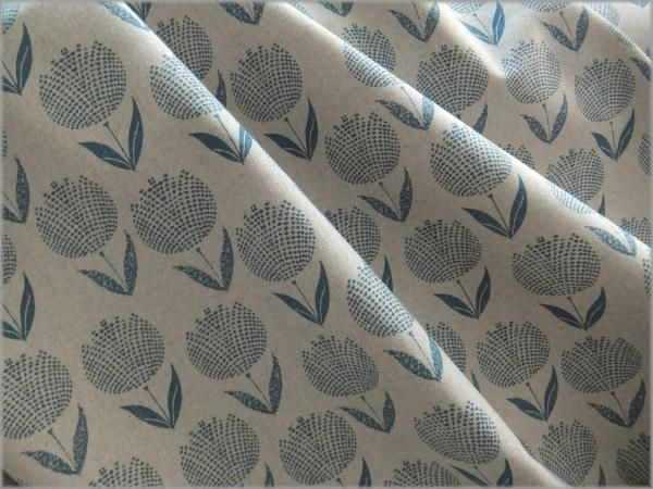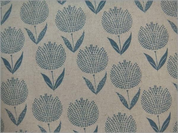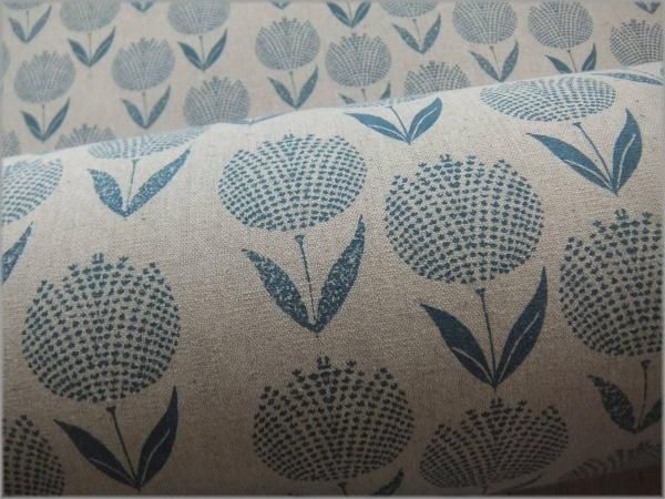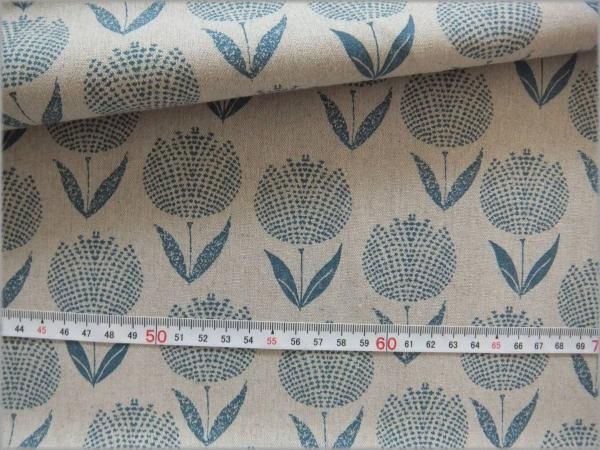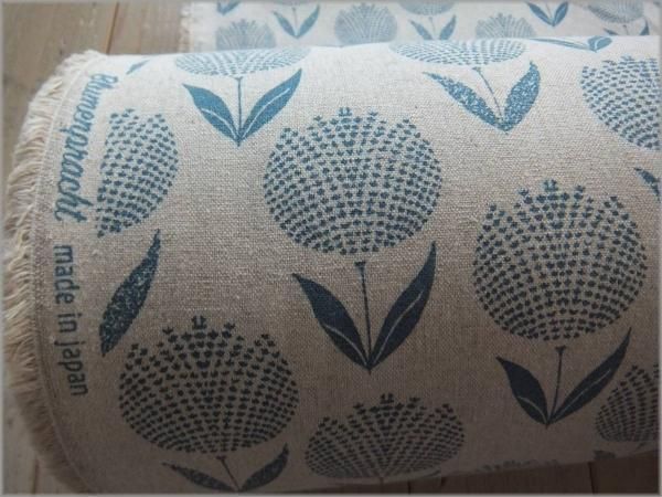 【綿麻キャンバス 生地】北欧調フラワー*linen turquoise*1A