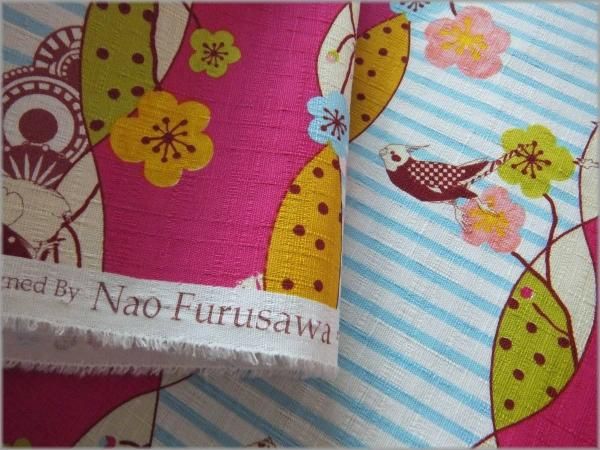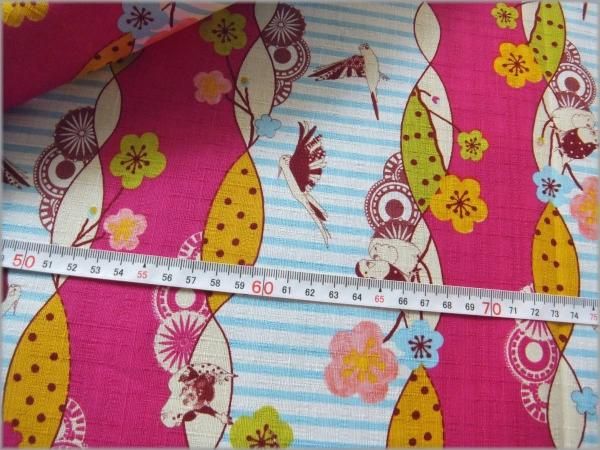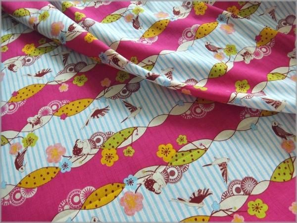 【ドビー 生地】Nishikotoro Blue*小鳥ボーダー*コットン*B1