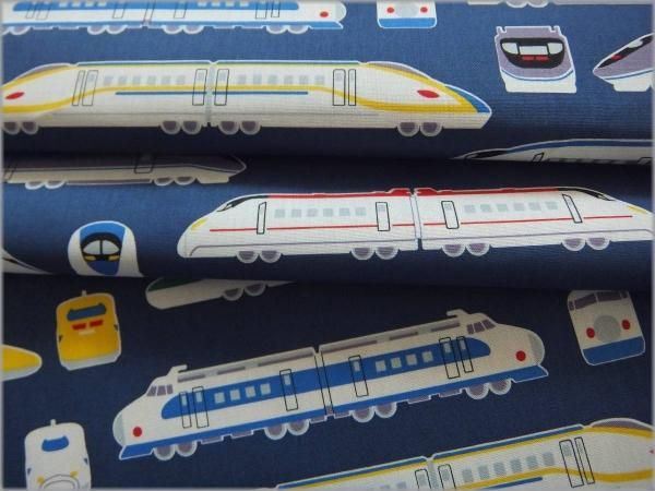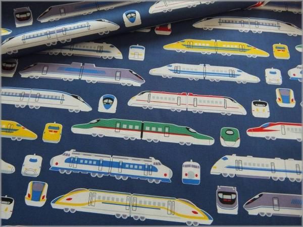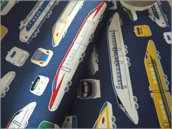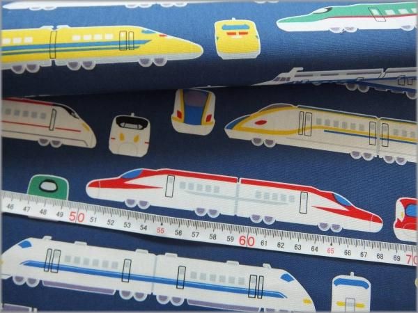 【CBポプリン 生地】新幹線しんかんせん*コットン*navy*7C