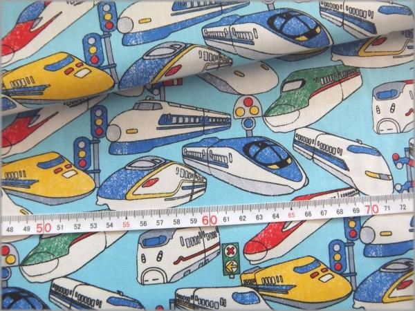 【CBポプリン 生地】新幹線しんかんせん*コットン*sky blue*8C