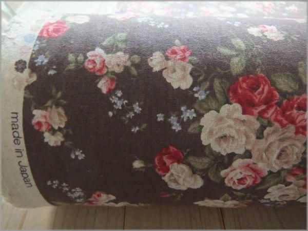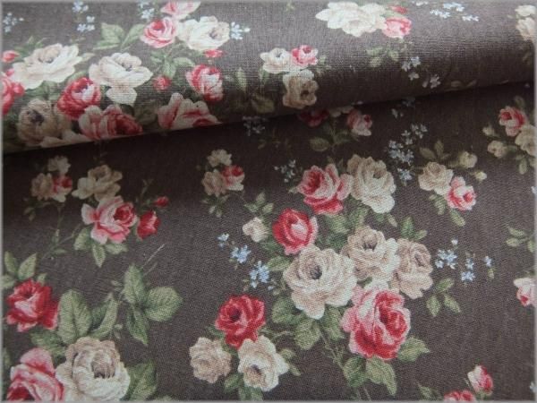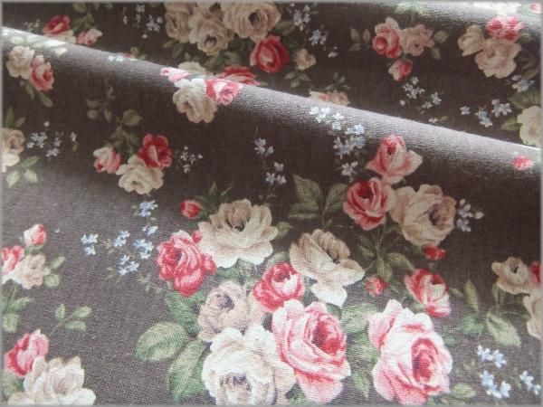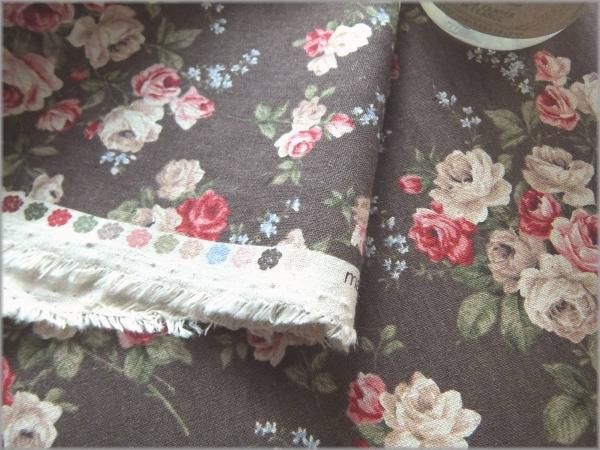 【綿麻キャンバス 生地】アンティークローズ*薔薇*brown*2E