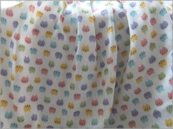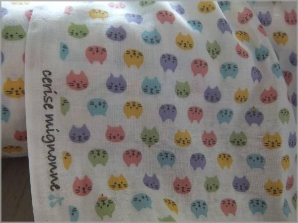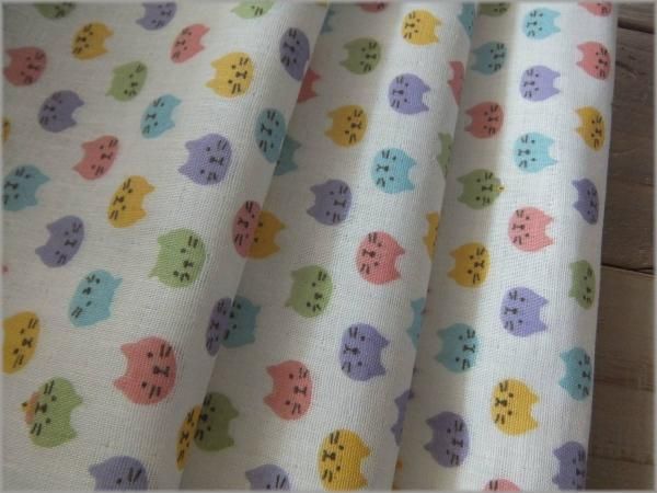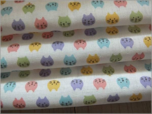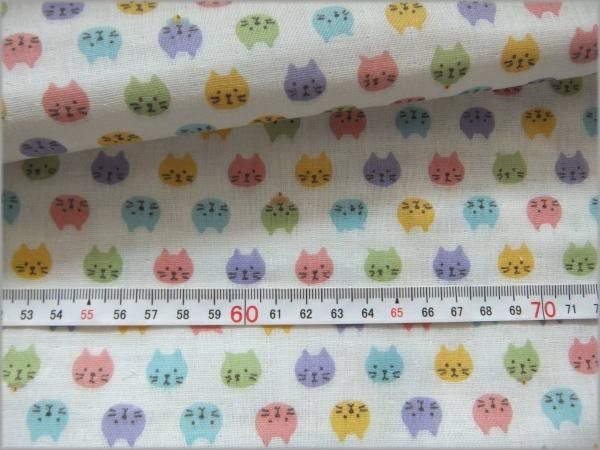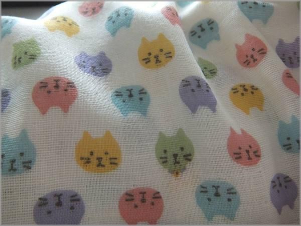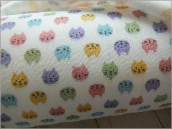 【ダブルガーゼ 生地】カラフル猫*コットン*off white*44A