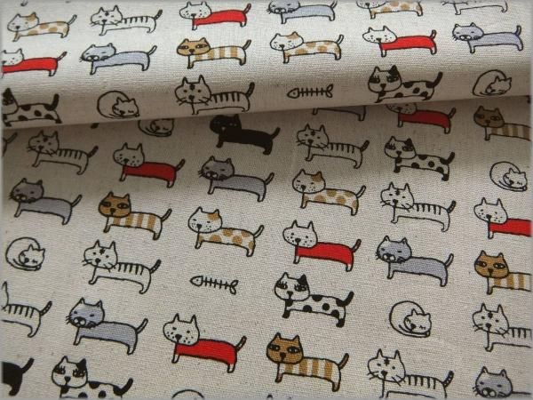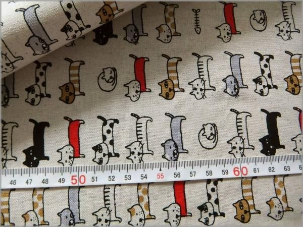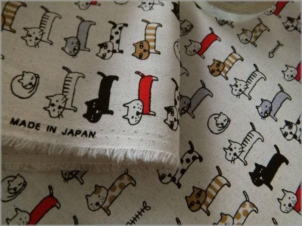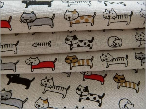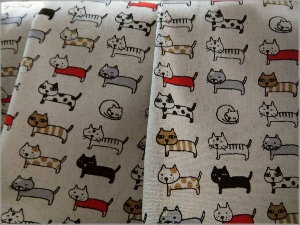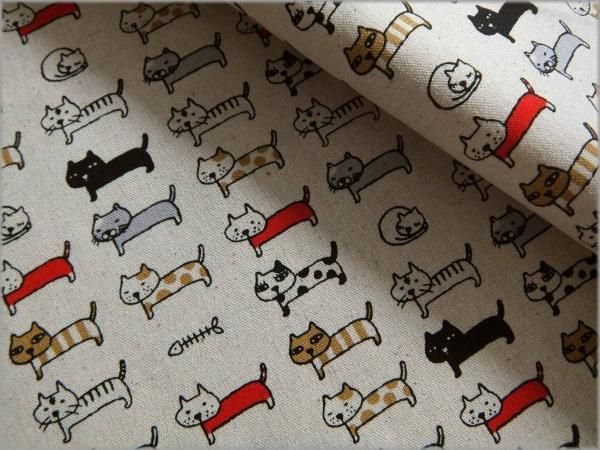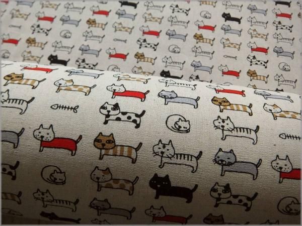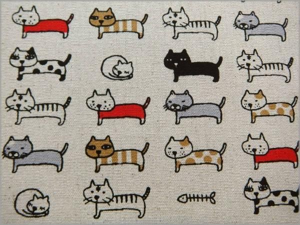 【綿麻キャンバス 生地】整列ネコ*コットンリネン*linen*6A