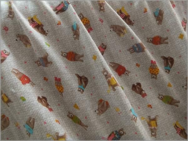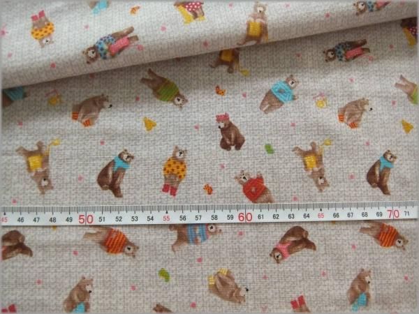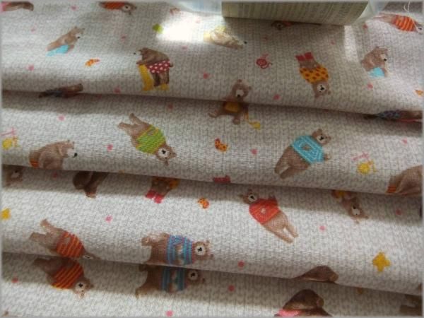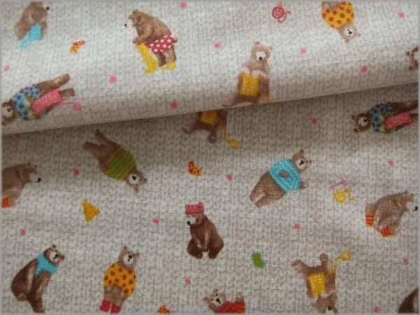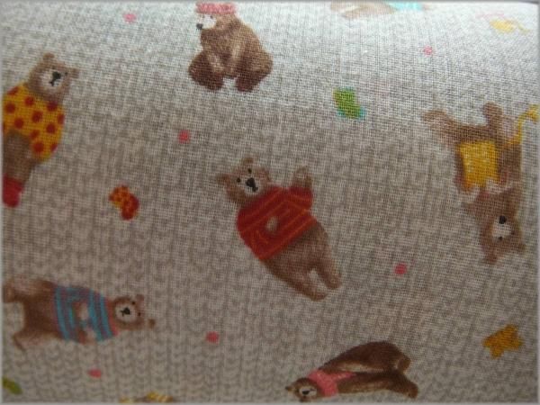 【ダブルガーゼ 生地】クマ&ニット転写風*コットン*1D