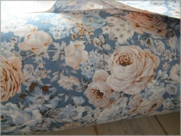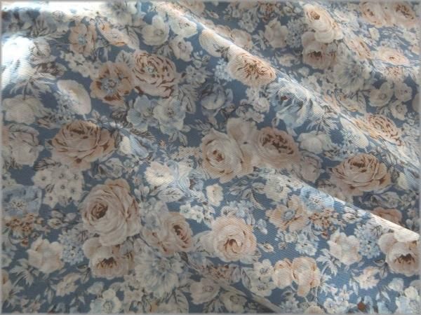 【ツイル 生地】ロココ調ローズ*薔薇*コットン*blue*D3