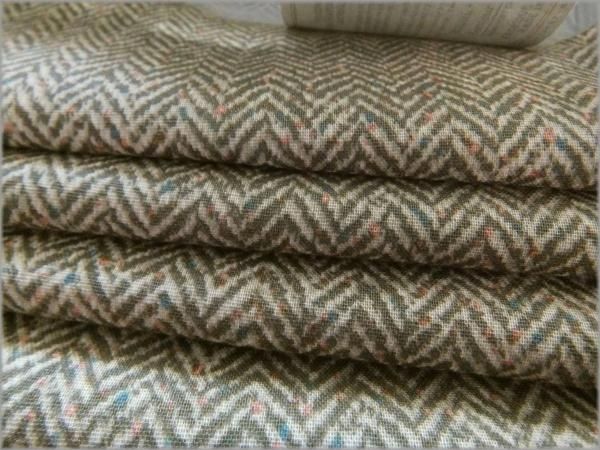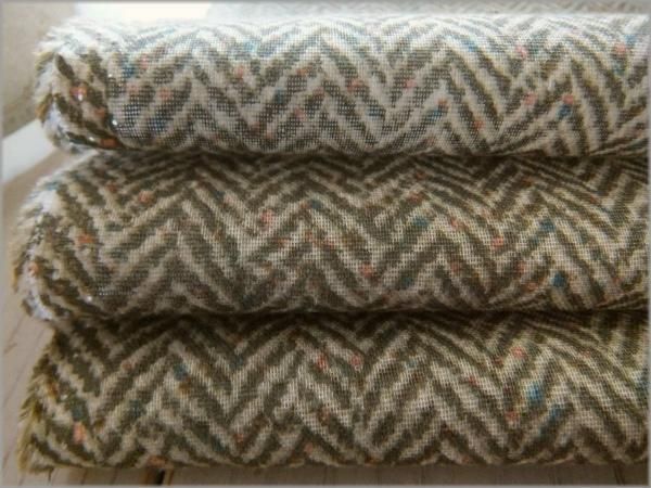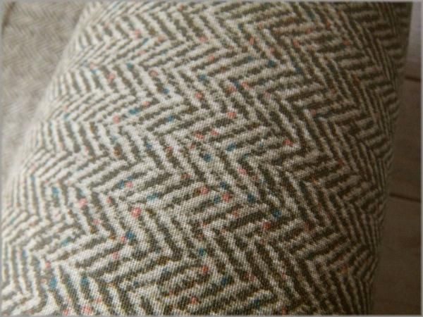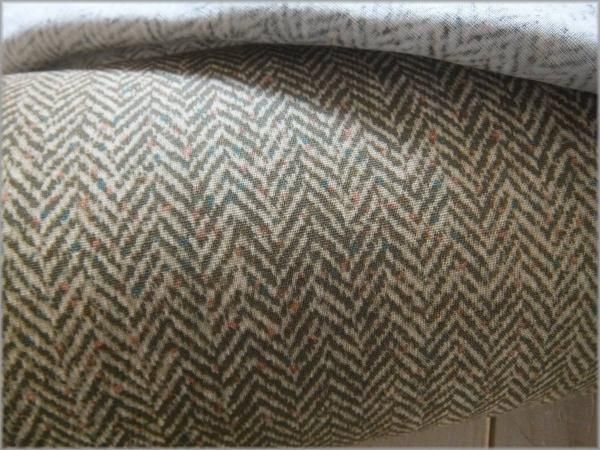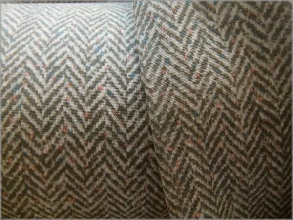 ヘリンボン転写プリント。色は抹茶・ベージュ系。