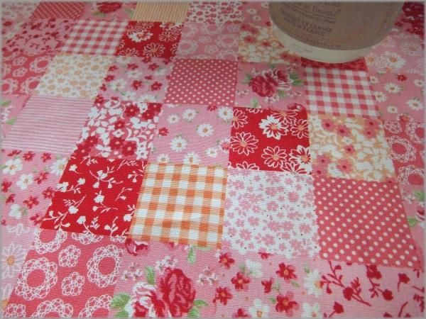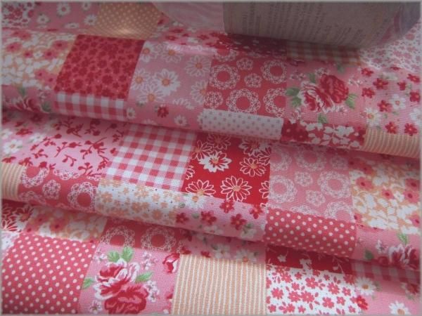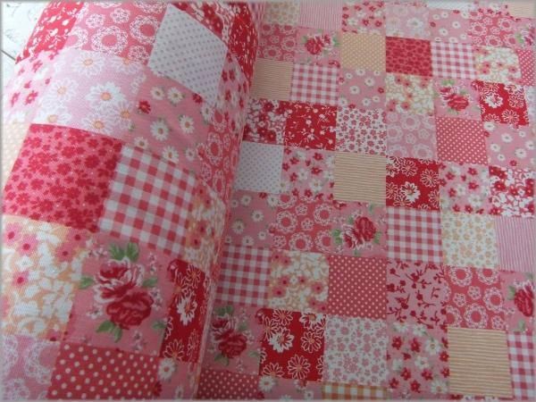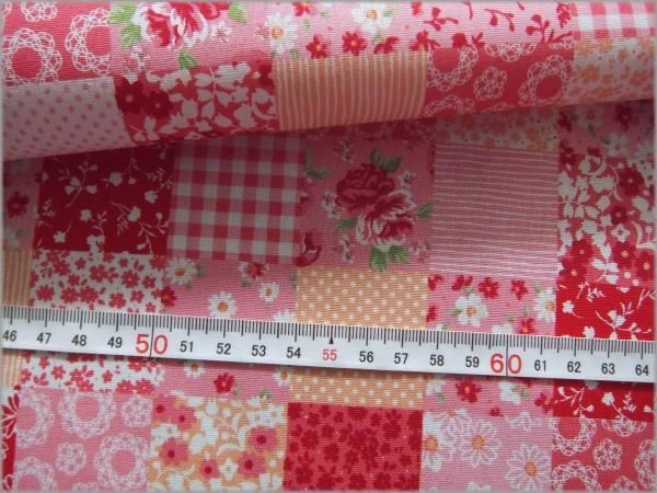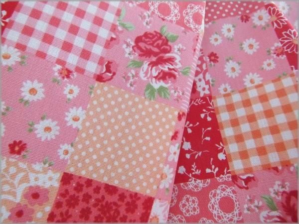【CBポプリン 生地】小花のパッチ*格子*チェック*red*3C