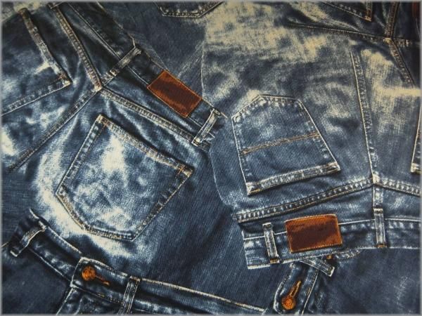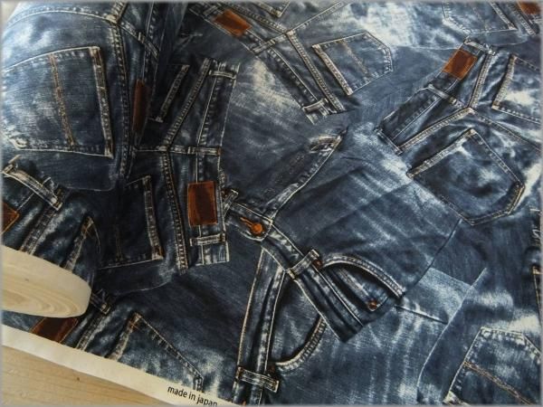 【ツイル 生地】デニム転写プリント*コットン*denim blue*1B