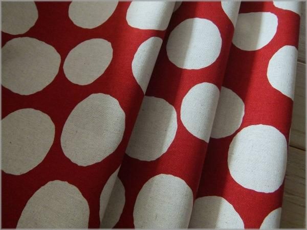 【綿麻キャンバス 生地】 ランダムドット*水玉*red*1C
