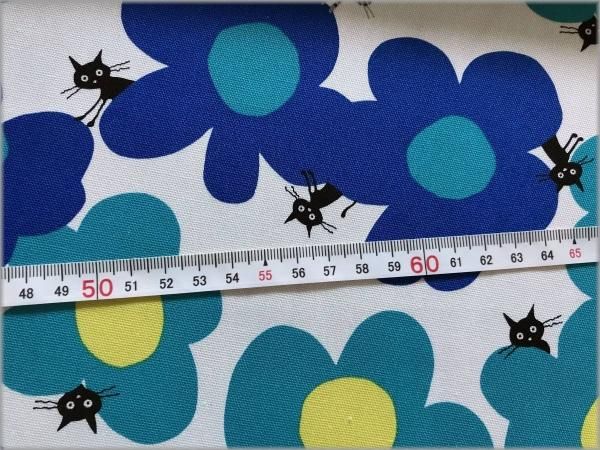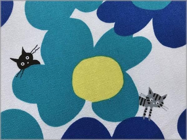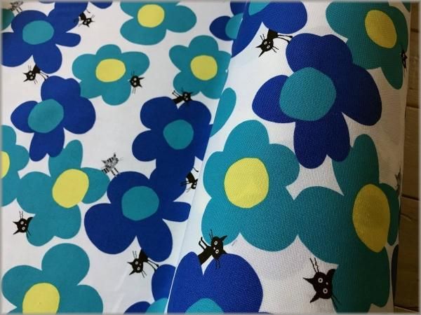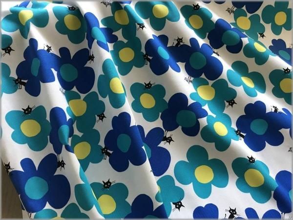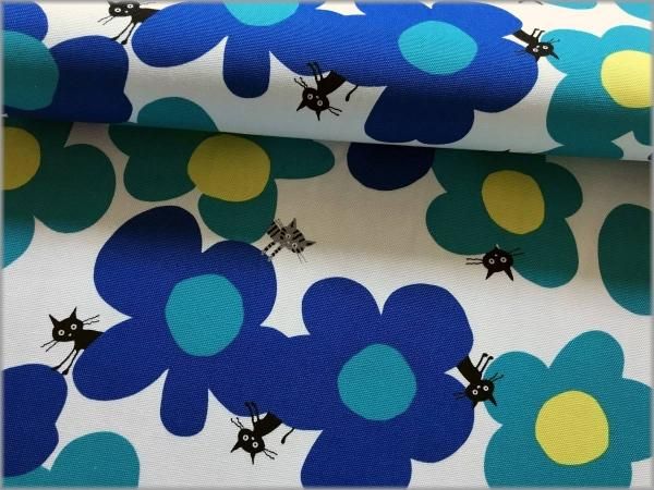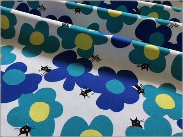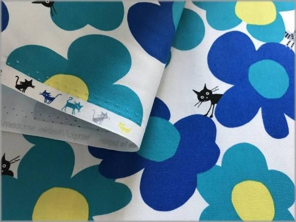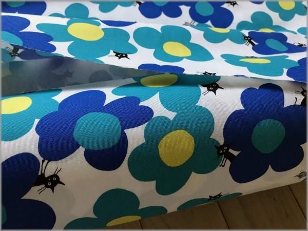 【オックス 生地】cocoland*ポップフラワー*黒猫*blue*15B