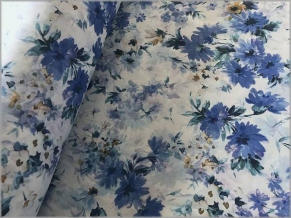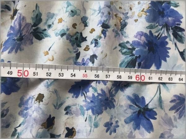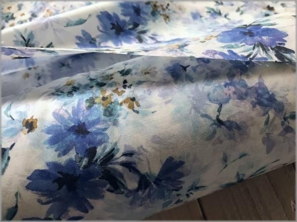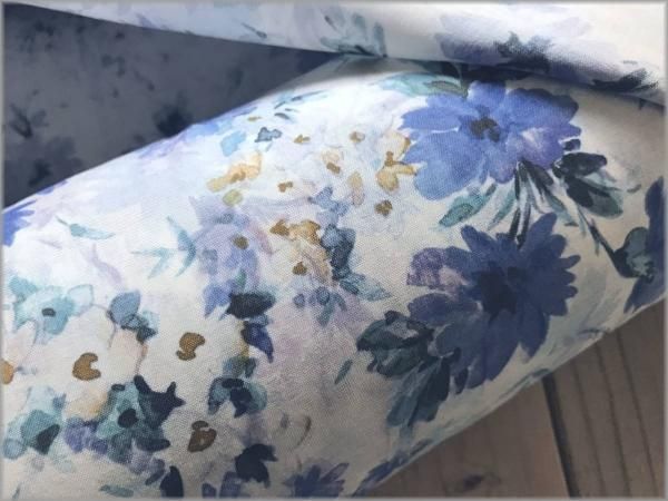 【60ローン 生地】水彩ボタニカル*草花*ice blue*1B