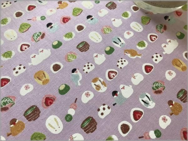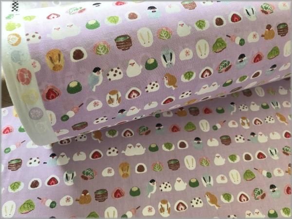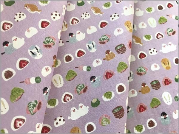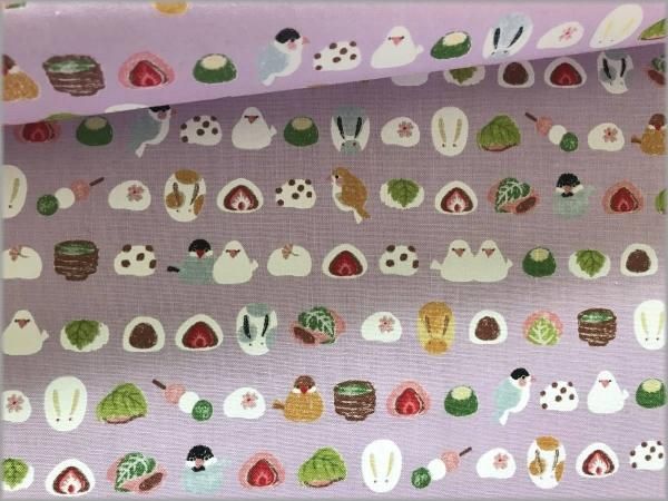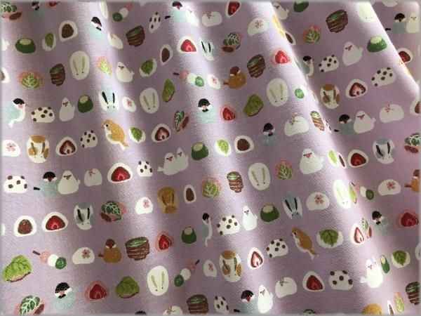 【スケア 生地】和柄*大福*小鳥うさぎ*purple*1D