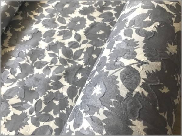 【カットジャガードボイル 生地】草花シルエット*gray*191C