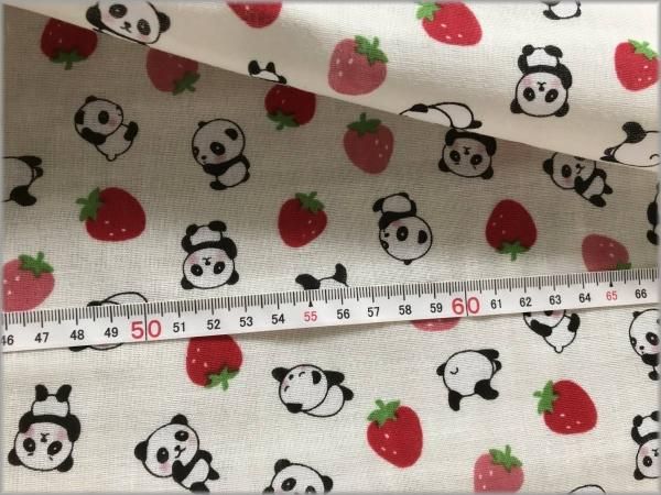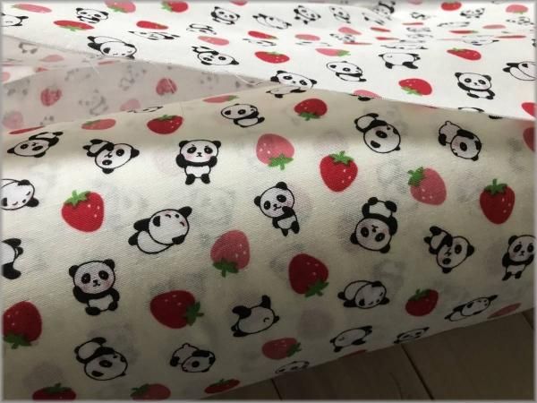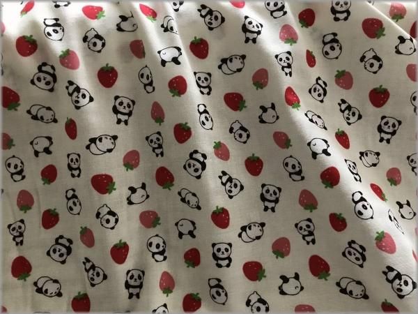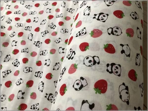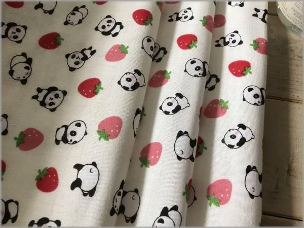 【ダブルガーゼ 生地】パンダいちご*vanilla*1A