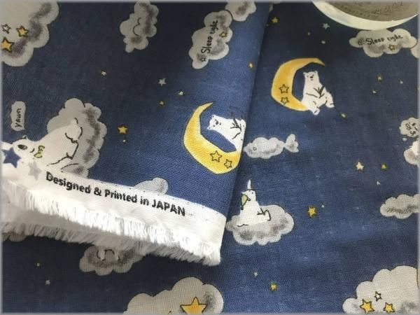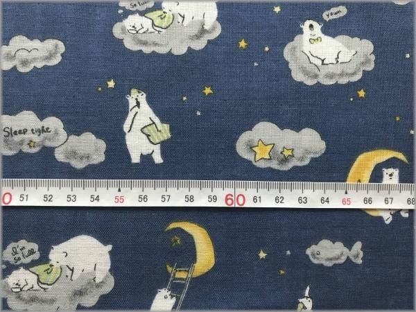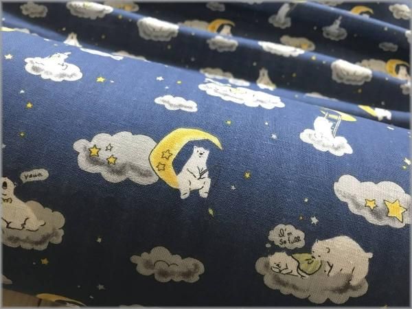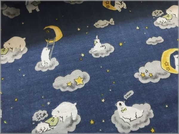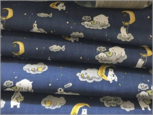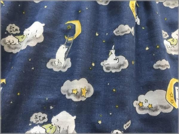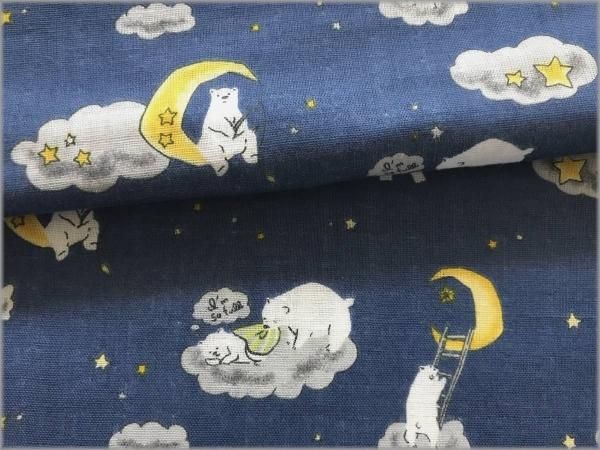 【ダブルガーゼ 生地】クマと夜空*月と星*blue*1E