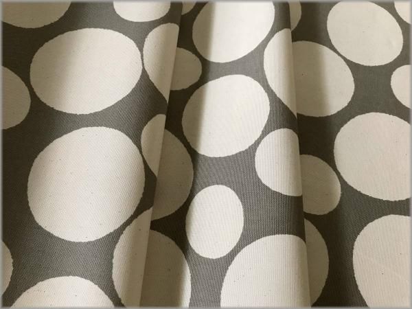 地色はグレー、水玉は生成り。