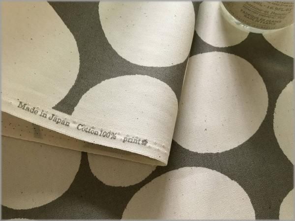 【オックス 生地】大きなランダムドット*水玉*グレー×生成り*80H
