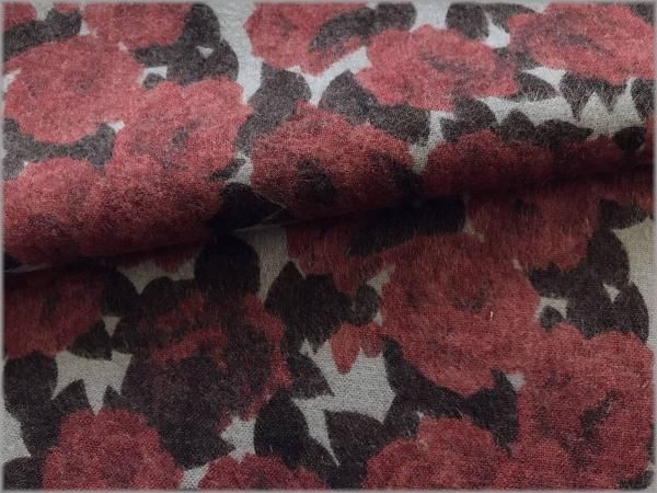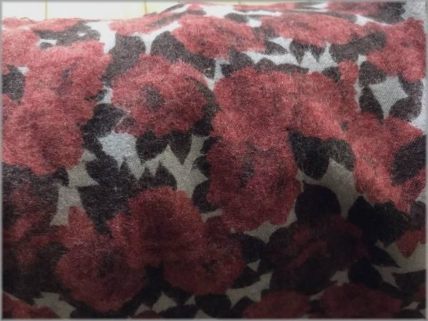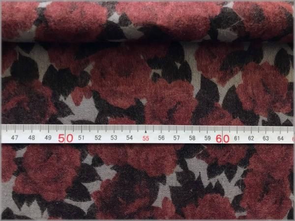 【起毛リネンレーヨン 生地】ローズ薔薇*gray darkred*181C