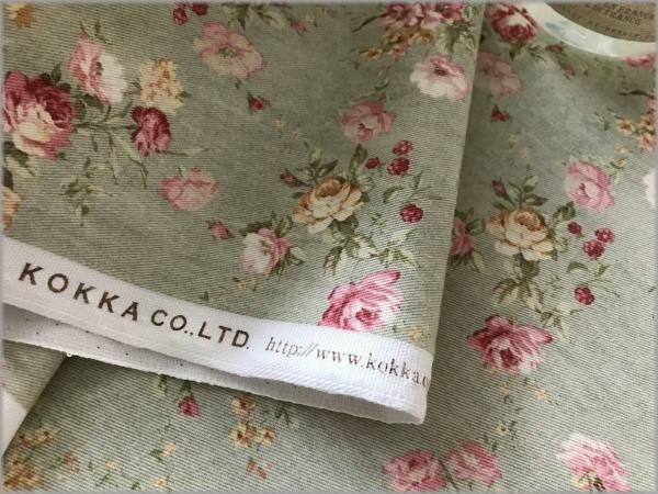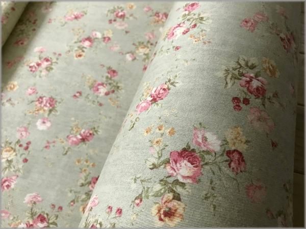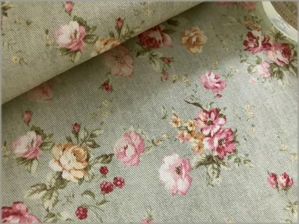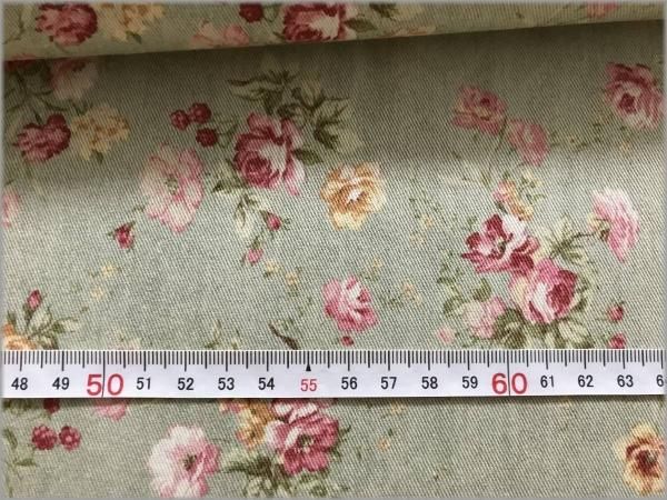 【ツイル 生地】ヴィンテージローズ*ソフト加工*green*2D