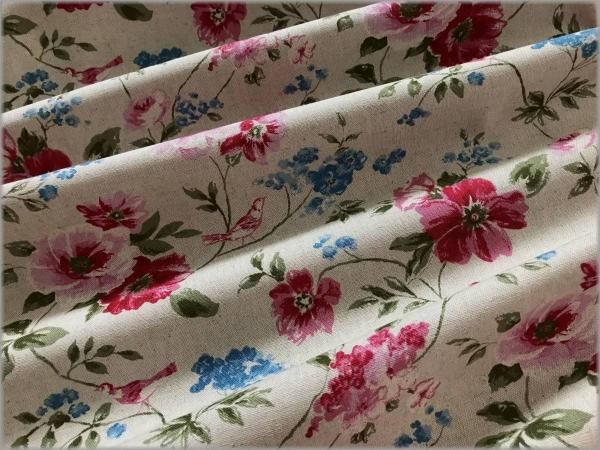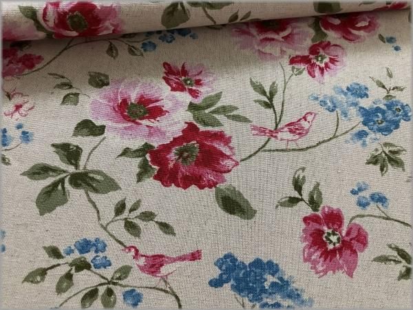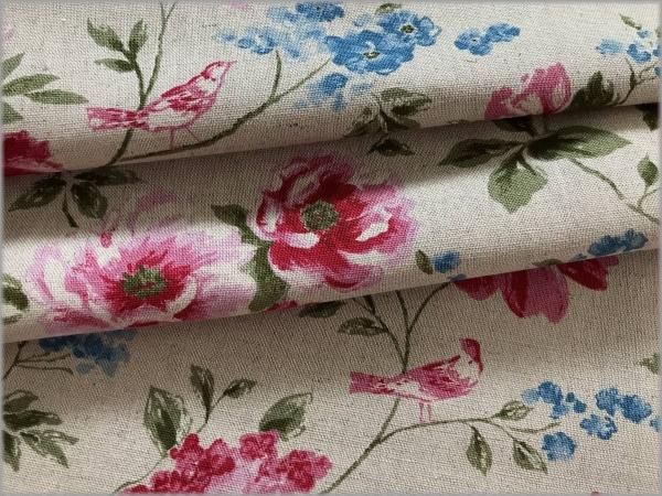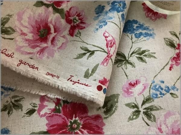 【綿麻キャンバス 生地】English garden*小鳥*linen*403A