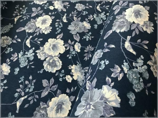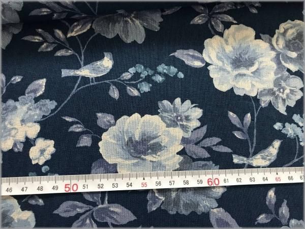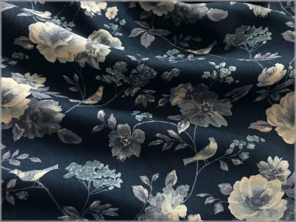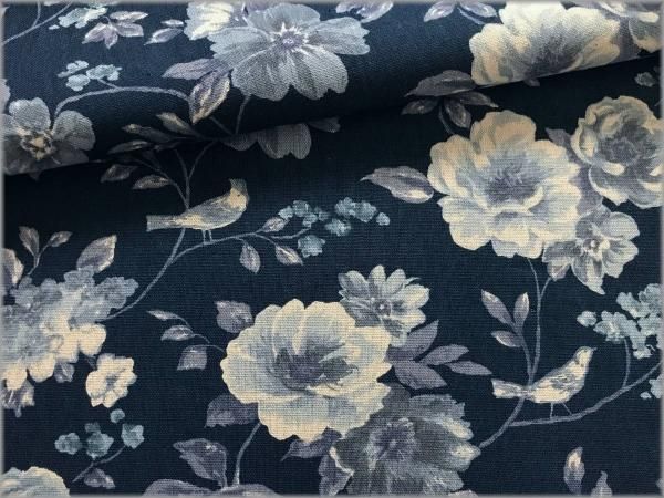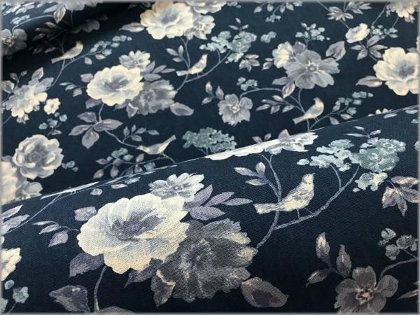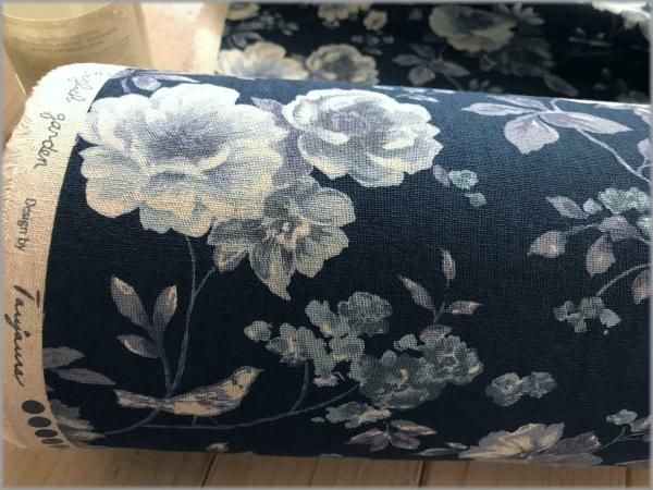 【綿麻キャンバス 生地】English garden*小鳥*navy*403D