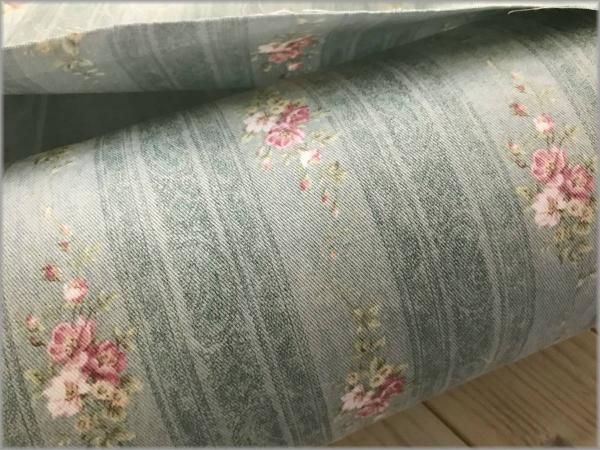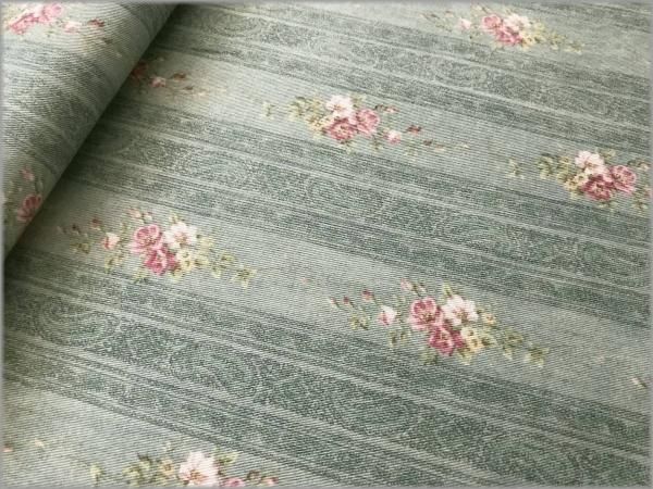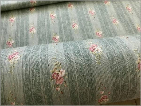 【ツイル 生地】薔薇&ペイズリー*ストライプ*ソフト加工*green*3C