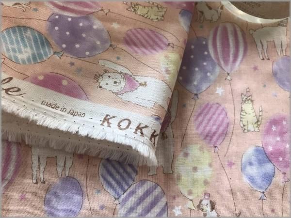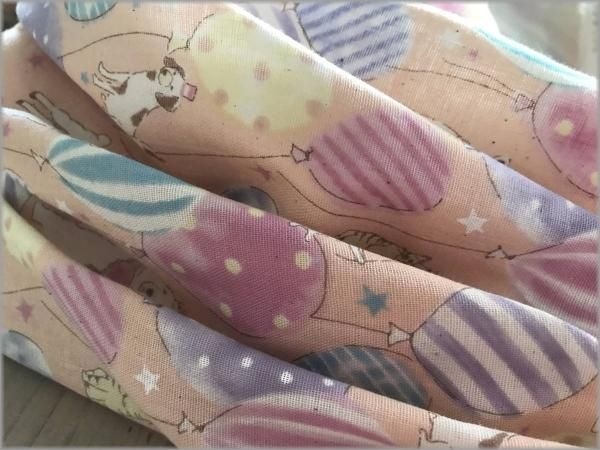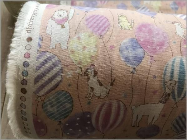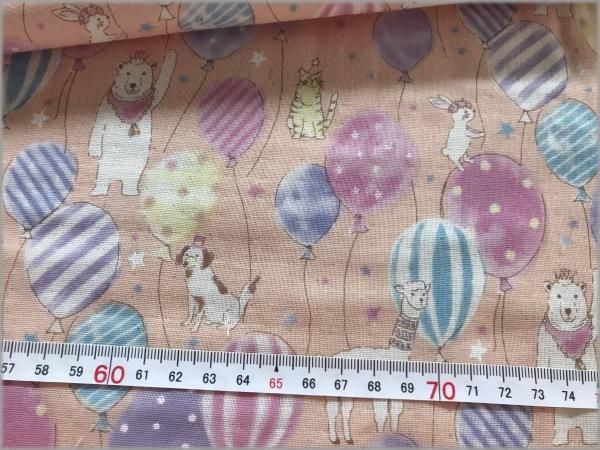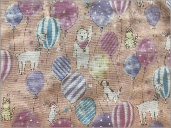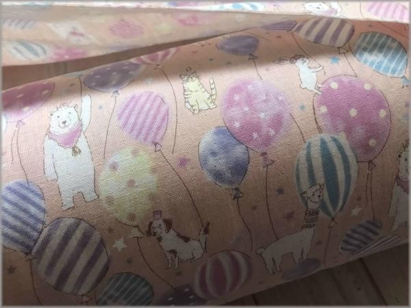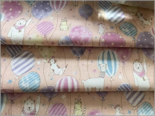 【ダブルガーゼ 生地】どうぶつ風船柄*カラフル水彩*salmon*1D