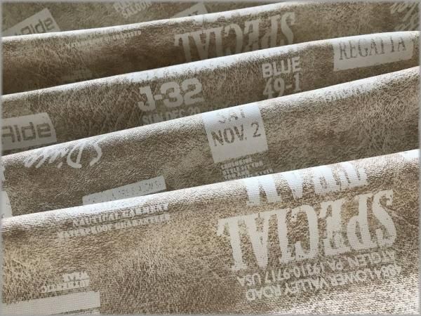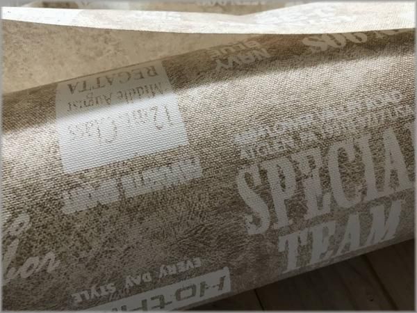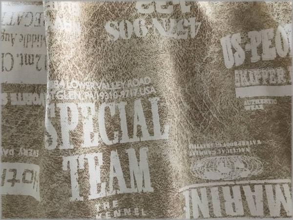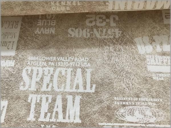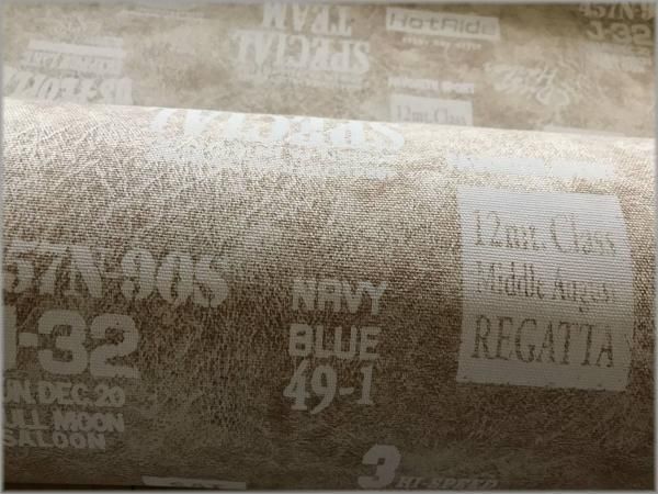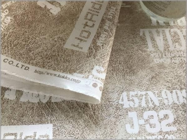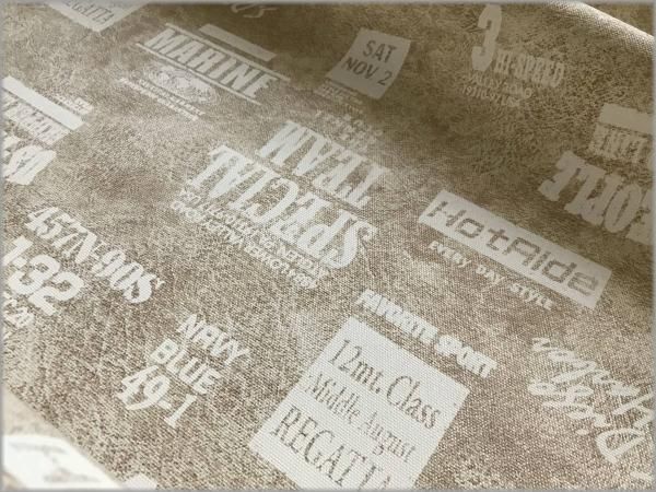 【10オックス 生地】レザー転写風プリント*英字柄*ロゴ*beige*2D