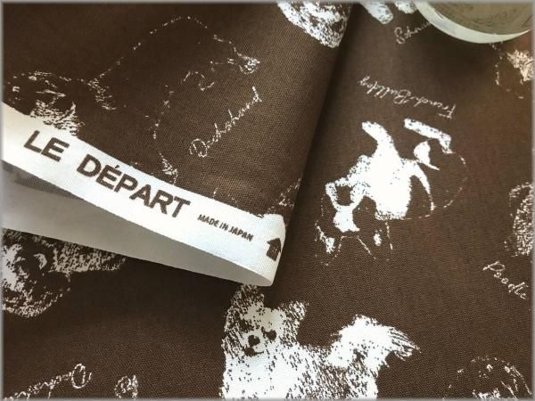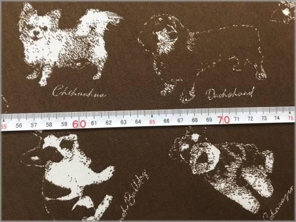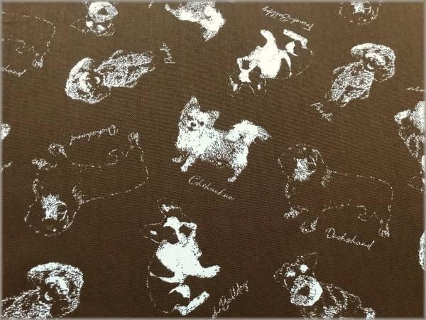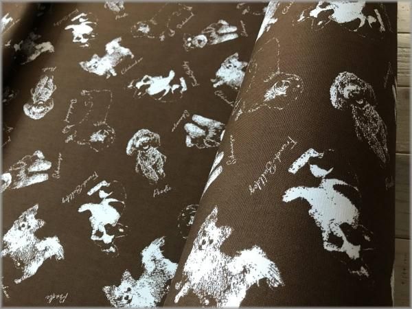 【オックス 生地】犬いぬ*英字*手描き風プリント*chocolate*B4