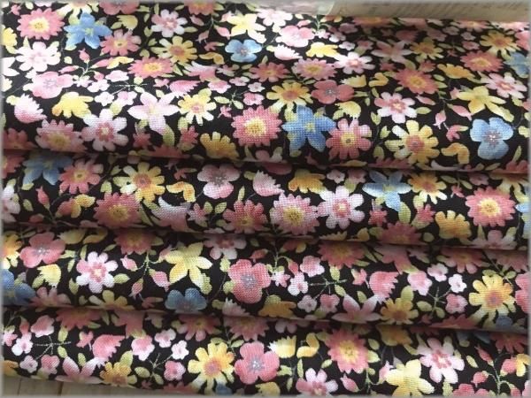 【シーチング 生地】草花*カラフル*ボタニカル*black*1D