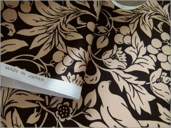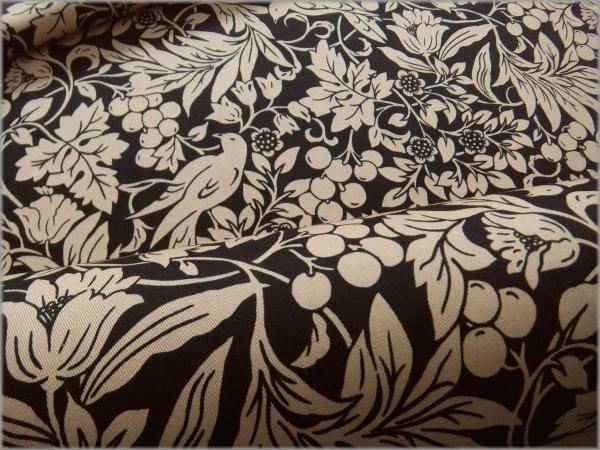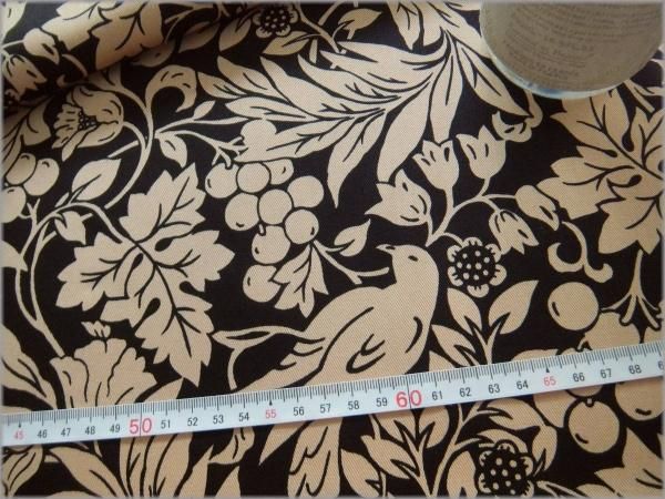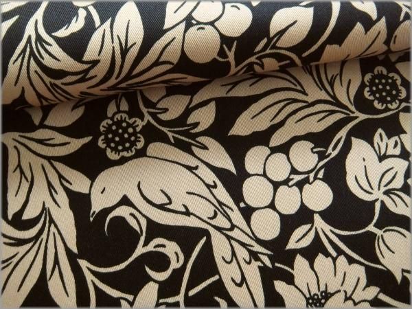 【ツイル 生地】木の実ボタニカル鳥*コットン*black*78E