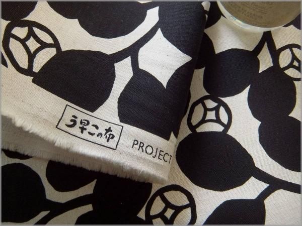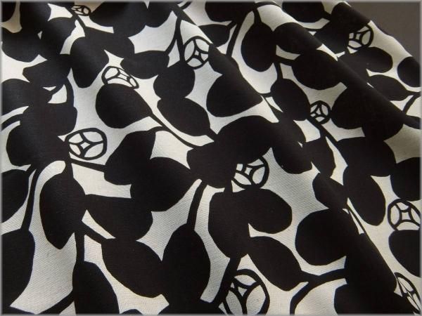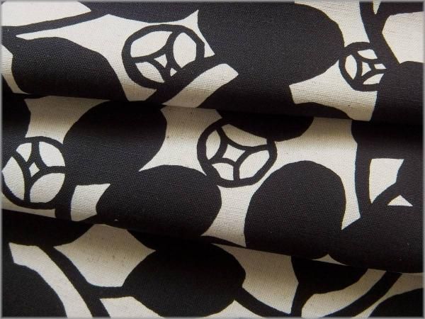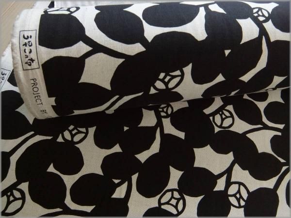 【綿麻キャンバス 生地】う早この布*椿*つばき*和モダン*ブラック*94B