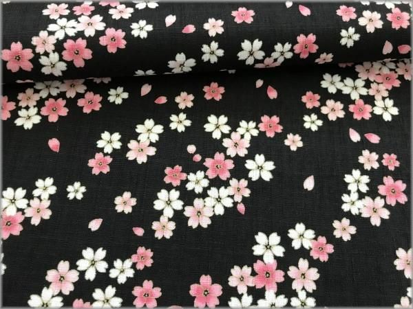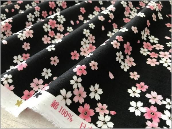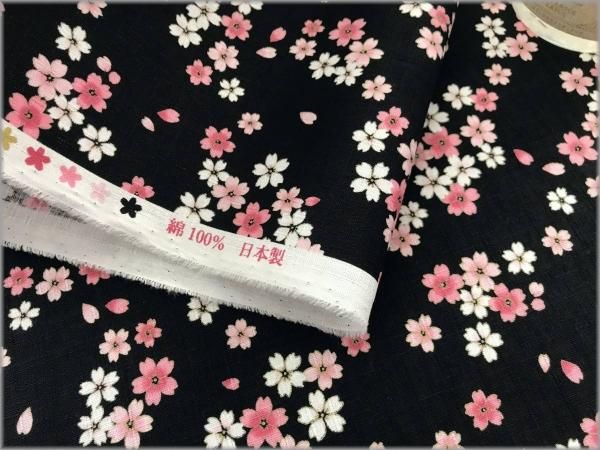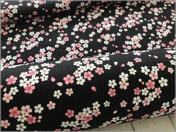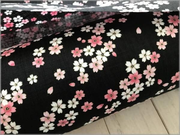 【ドビー 生地】和調*さくら*桜*花びら*black*1E