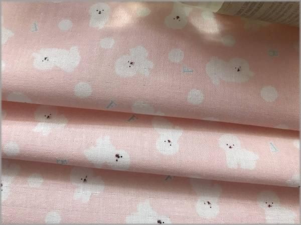 【ダブルガーゼ 生地】ビションフリーゼ*犬*milky pink*1B